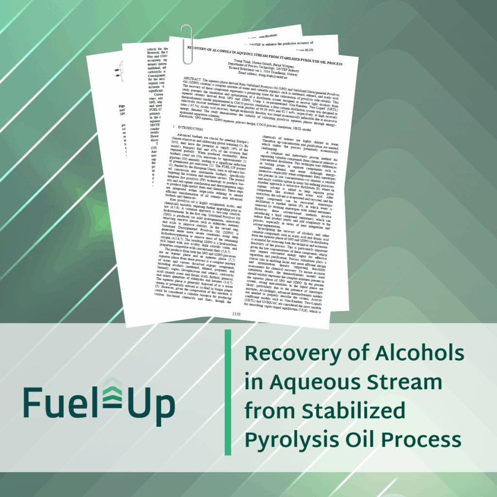 đź“‘ FUEL-UP paper “Recovery of Alcohols in Aqueous Stream from Stabilized Pyrolysis Oil Process” has been included on EUBCE 2025 open access conference proceedings!